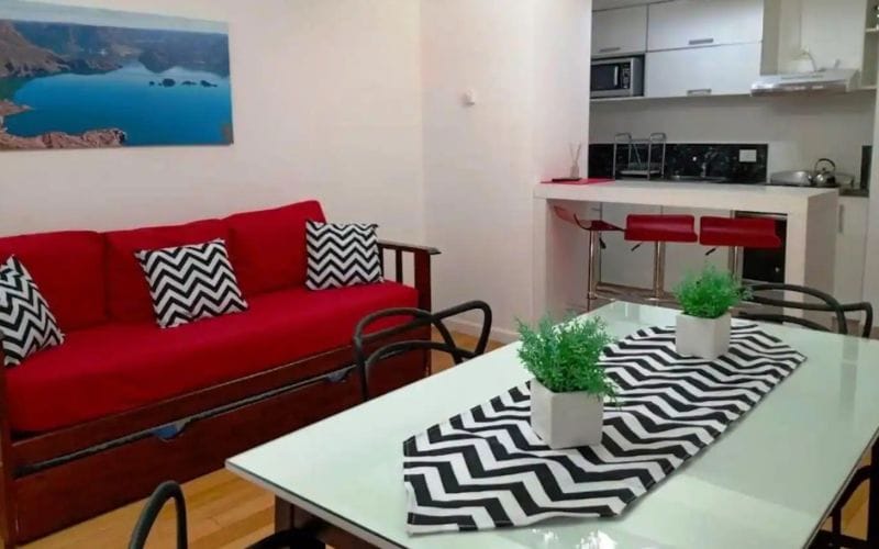 Es un departamento para 4 personas, Wifi, TV por cable, cocina completa integrada al estar/comedor con una barra desayunador, un dormitorio con cama matrimonial, baño completo con bañera y ducha, heladera, horno y anafe a gas, microondas, vajilla, ropa de cama y toallas.