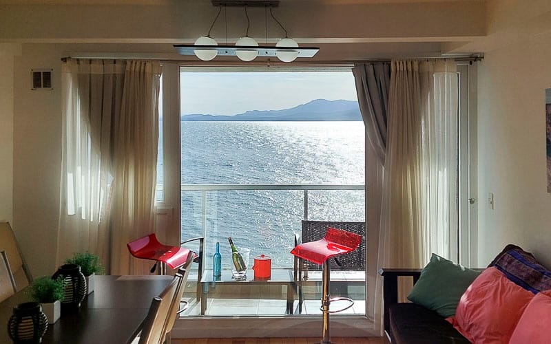 Departamento de alquiler temporario turístico en el edificio Ollagua de San Carlos de Bariloche. Ubicado junto al lago, acceso a la playa y próximo al centro de la ciudad y a restaurantes de la zona y al Centro Cívico .